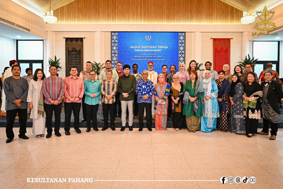 KUANTAN, 3 April 2026 – Kebawah Duli Paduka Baginda Sultan Pahang Al-Sultan Abdullah Ri’ayatuddin Al-Mustafa Billah Shah Ibni Al-Marhum Sultan Haji Ahmad Shah dan Kebawah Duli Paduka Baginda Tengku Ampuan Pahang Tunku Azizah Aminah Maimunah Iskandariah Binti Almarhum Sultan Iskandar Al-Haj berkenan berangkat ke Majlis Santapan Diraja Pekan African Night di Istana Abdulaziz di sini semalam.