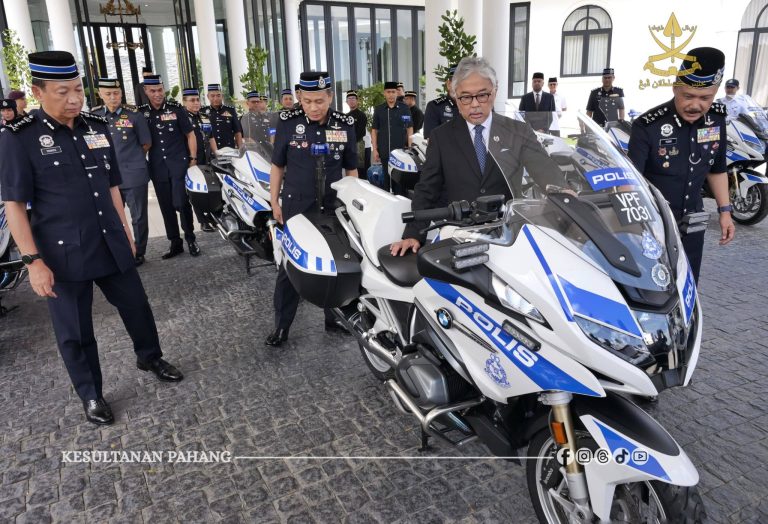 KUANTAN, 23 Disember 2025 – Kebawah Duli Paduka Baginda Sultan Pahang Al-Sultan Abdullah Ri’ayatuddin Al-Mustafa Billah Shah Ibni Al-Marhum Sultan Haji Ahmad Shah berkenan berangkat ke Majlis Penyerahan Motosikal Berkuasa Tinggi Bagi Penugasan Kawalan Keselamatan dan Pengiring Polis Diraja Malaysia (PDRM) di Istana Abdulaziz di sini hari ini.
