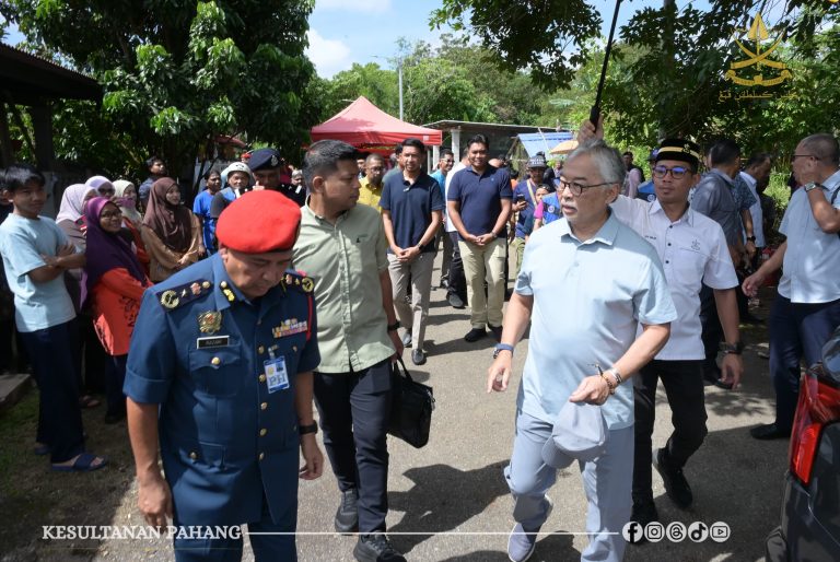 KUANTAN, 22 Februari 2026 – Kebawah Duli Paduka Baginda Sultan Pahang Al-Sultan Abdullah Ri’ayatuddin Al-Mustafa Billah Shah Ibni Al-Marhum Sultan Haji Ahmad Shah berkenan bercemar duli berangkat menziarahi mangsa-mangsa kebakaran di Kampung Padang dan Taman Sungai Isap Murni, di sini hari ini.