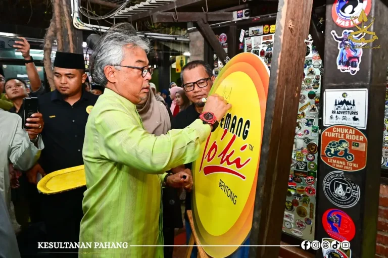 BENTONG, 3 Oktober 2025 – Kebawah Duli Paduka Baginda Sultan Pahang Al-Sultan Abdullah Ri’ayatuddin Al-Mustafa Billah Shah Ibni Al-Marhum Sultan Haji Ahmad Shah berkenan bercemar duli berangkat menikmati santapan tengahari di Restoran Lemang To’ki di sini hari ini.