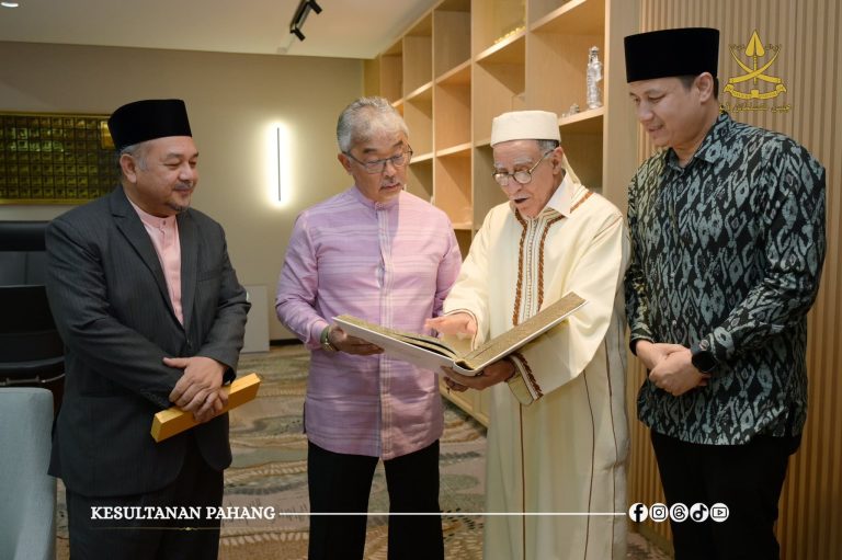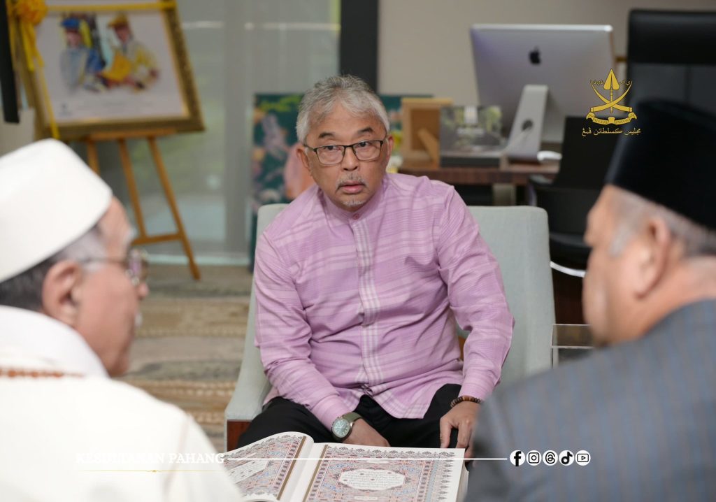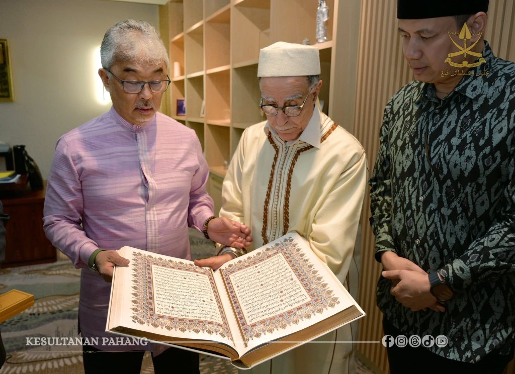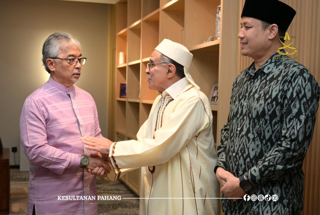 KUALA LUMPUR, 7 Ogos 2025 – Kebawah Duli Paduka Baginda Sultan Pahang Al-Sultan Abdullah Ri’ayatuddin Al-Mustafa Billah Shah Ibni Al-Marhum Sultan Haji Ahmad Shah berkenan menerima mengadap Ahli Jemaah Hakim Majlis Tilawah dan Hafazan Peringkat Antrabangsa Ke-65 (2025) yang juga merupakan imam dan bekas pensyarah di Universiti Qarawyyin, Morocco iaitu Fadhilatu Al-Sheikh Dr. Mohamad Ali Atafay di Shahzan House, di sini hari ini.