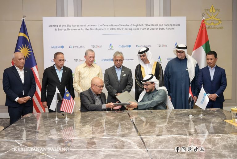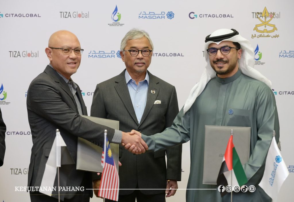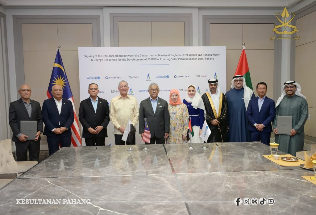 Terdahulu, Paduka Baginda berkenan menyaksikan Majlis Menandatangani Perjanjian antara Konsortium Masdar – Citaglobal – Tiza Global dan Pahang Water & Energy Resources yang turut berlangsung di Hotel St. Regis di sini.