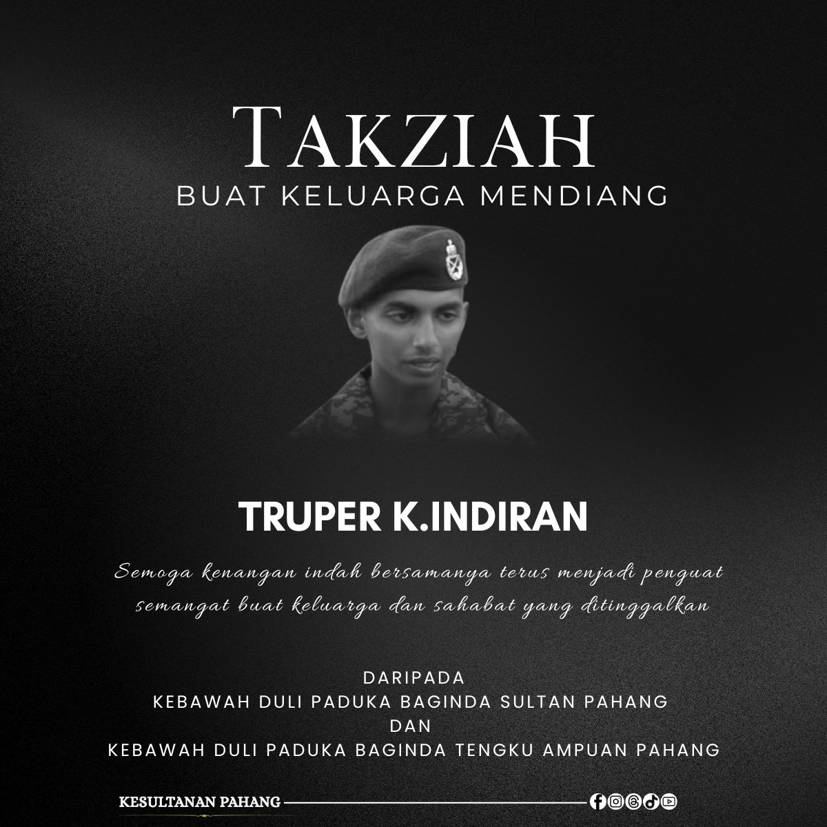 Mangsa, Truper K. Indiran, 22, yang sedang mengikuti kursus di Rejimen Pertama, Kor Armor Diraja, Kem Batu 10, di sini, dilaporkan meninggal dunia selepas menerima rawatan di Hospital Tengku Ampuan Afzan (HTAA).