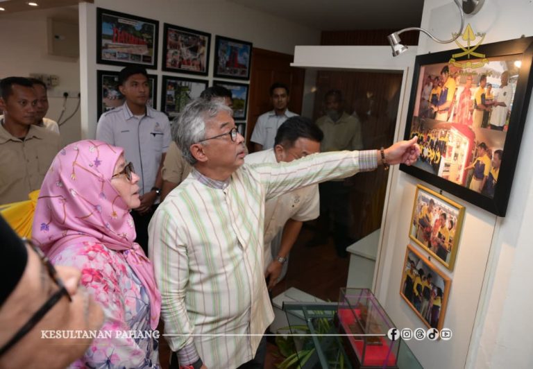 TEMERLOH, 19 September 2025 – Kebawah Duli Paduka Baginda Sultan Pahang, Al-Sultan Abdullah Ri’ayatuddin Al-Mustafa Billah Shah Ibni Almarhum Sultan Haji Ahmad Shah dan Kebawah Duli Paduka Baginda Tengku Ampuan Pahang, Tunku Azizah Aminah Maimunah Iskandariah Binti Sultan Iskandar Al-Haj berkenan bercemar duli berangkat ke Galeri Tokoh, di sini.