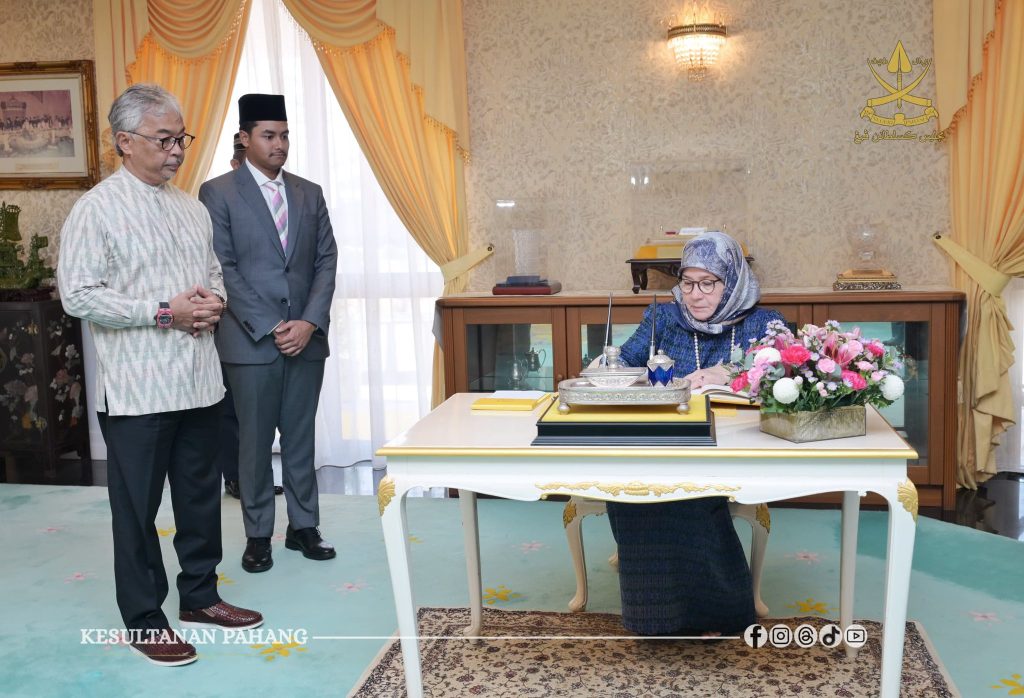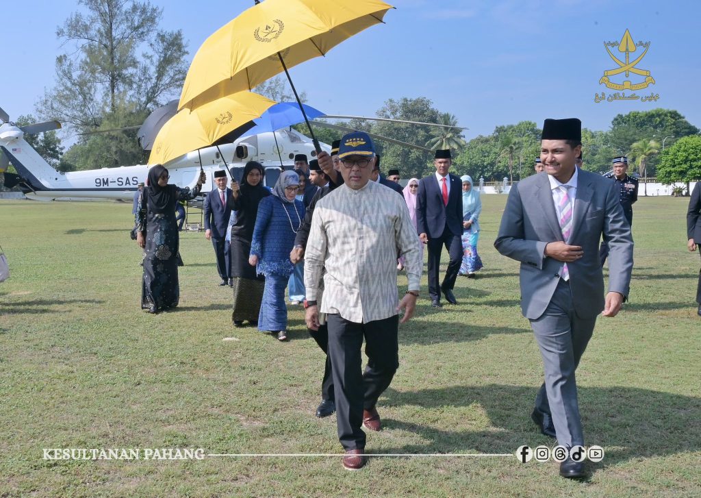 TERENGGANU, 9 Ogos 2025 – Kebawah Duli Paduka Baginda Sultan Pahang, Al-Sultan Abdullah Ri’ayatuddin Al-Mustafa Billah Shah Ibni Almarhum Sultan Haji Ahmad Shah dan Kebawah Duli Paduka Baginda Tengku Ampuan Pahang Tunku Azizah Aminah Maimunah Iskandariah Binti Almarhum Sultan Iskandar Al-Haj berkenan berangkat bercemar duli ke Terengganu untuk menghadiri beberapa acara selama dua hari.