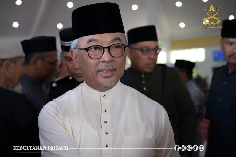 KUANTAN 05 Sept. 2025 – Kebawah Duli Paduka Baginda Sultan Pahang Al-Sultan Abdullah Ri’ayatuddin Al-Mustafa Billah Shah Ibni Al-Marhum Sultan Haji Ahmad Shah berkenan berangkat menunaikan solat Jumaat di Masjid Tengku Ampuan Afzan di sini hari ini.