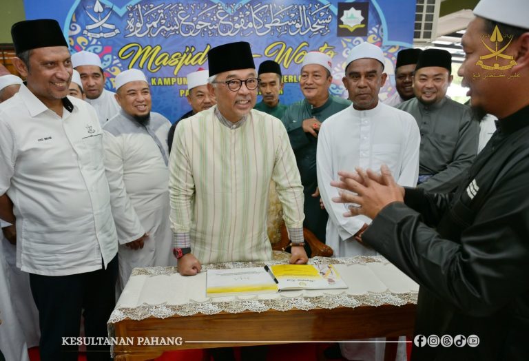 TEMERLOH, 19 September 2025 – Kebawah Duli Paduka Baginda Sultan Pahang Al-Sultan Abdullah Ri’ayatuddin Al-Mustafa Billah Shah Ibni Al-Marhum Sultan Haji Ahmad Shah berangkat menunaikan solat Jumaat di Masjid Al Wosto, Kampung Tanjung Besar di sini hari ini.