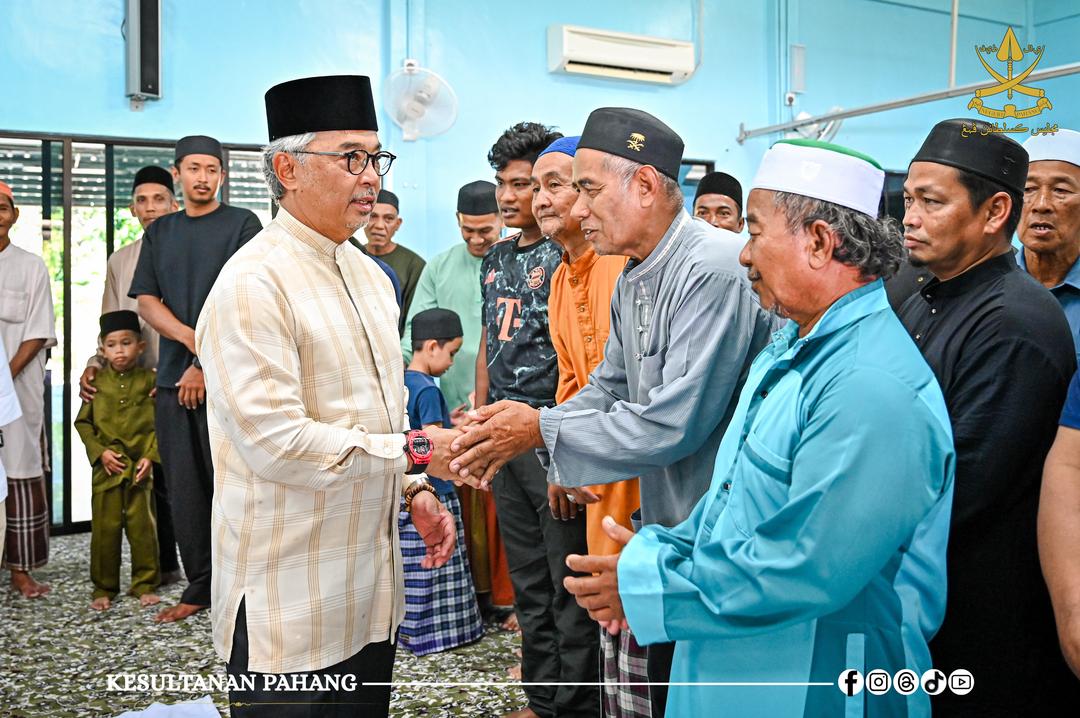 Paduka Baginda turut berkenan menyantuni dan menyampaikan kurniaan kepada pengerusi masjid dan jemaah di situ. -KESULTANAN PAHANG
