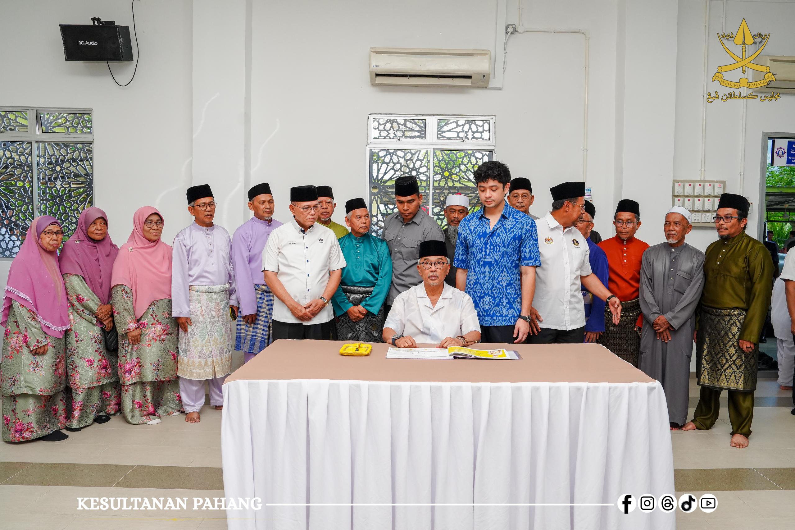 Paduka Baginda turut berkenan menyantuni dan menyampaikan kurniaan kepada pengerusi masjid dan jemaah yang hadir. – KESULTANAN PAHANG