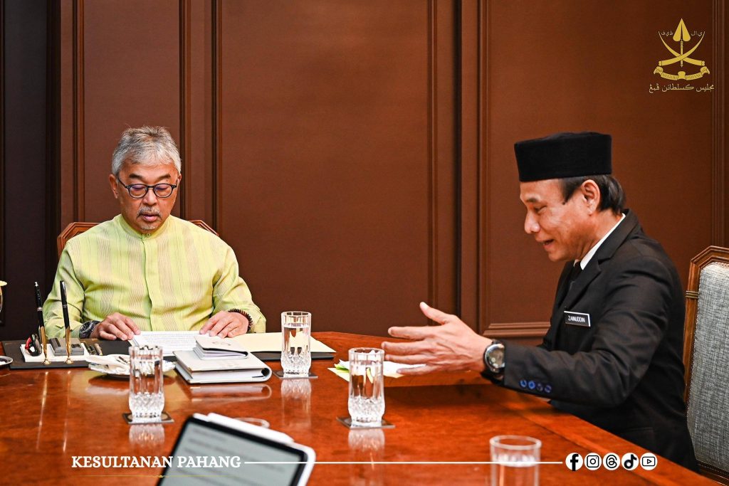 KUANTAN, 22 Januari 2026 – Kebawah Duli Paduka Baginda Sultan Pahang Al-Sultan Abdullah Ri’ayatuddin Al-Mustafa Billah Shah Ibni Al-Marhum Sultan Haji Ahmad Shah berkenan menerima mengadap Al-Fadhil Qadhi Daerah Jengka, Nik Ibrahim Nik Abdullah; Pengarah Perhutanan Negeri Pahang, Dato’ Zainuddin Jamaluddin dan Pengarah Jabatan Pengairan dan Saliran (JPS) Negeri Pahang, Ir. Arman bin Mokhtar di Istana Abdulaziz di sini hari ini.