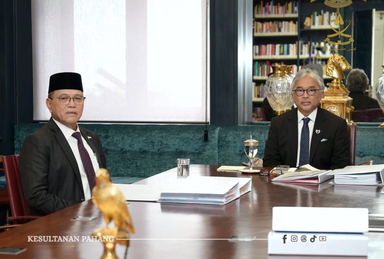 Paduka Baginda meluangkan masa kira-kira satu jam bagi membincangkan pelbagai perkara terutama berkaitan kemakmuran dan kemajuan negeri serta hal-hal berkaitan rakyat. – KESULTANAN PAHANG