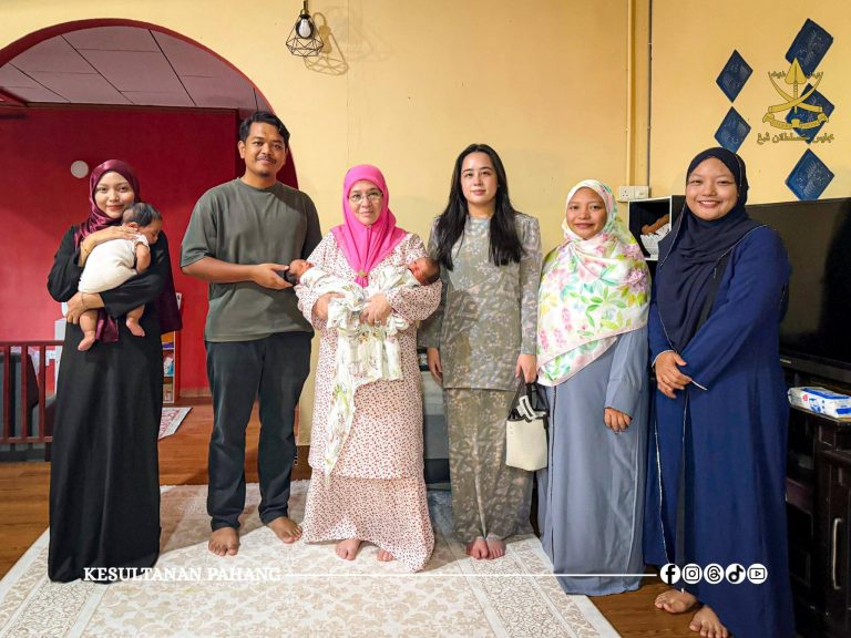 KUANTAN 24 Disember 2025 -Kebawah Duli Paduka Baginda Tengku Ampuan Pahang Tunku Azizah Aminah Maimunah Iskandariah Binti Almarhum Sultan Iskandar Al-Haj berkenan bercemar duli menziarahi pasangan suami isteri yang berjaya mendapatkan bayi kembar sepasang selepas menjalani rawatan persenyawaan tabung uji (IVF) tajaan Yayasan Fertiliti Tunku Azizah (TAFF) di rumah mereka di Pantai Sepat di sini hari ini.
