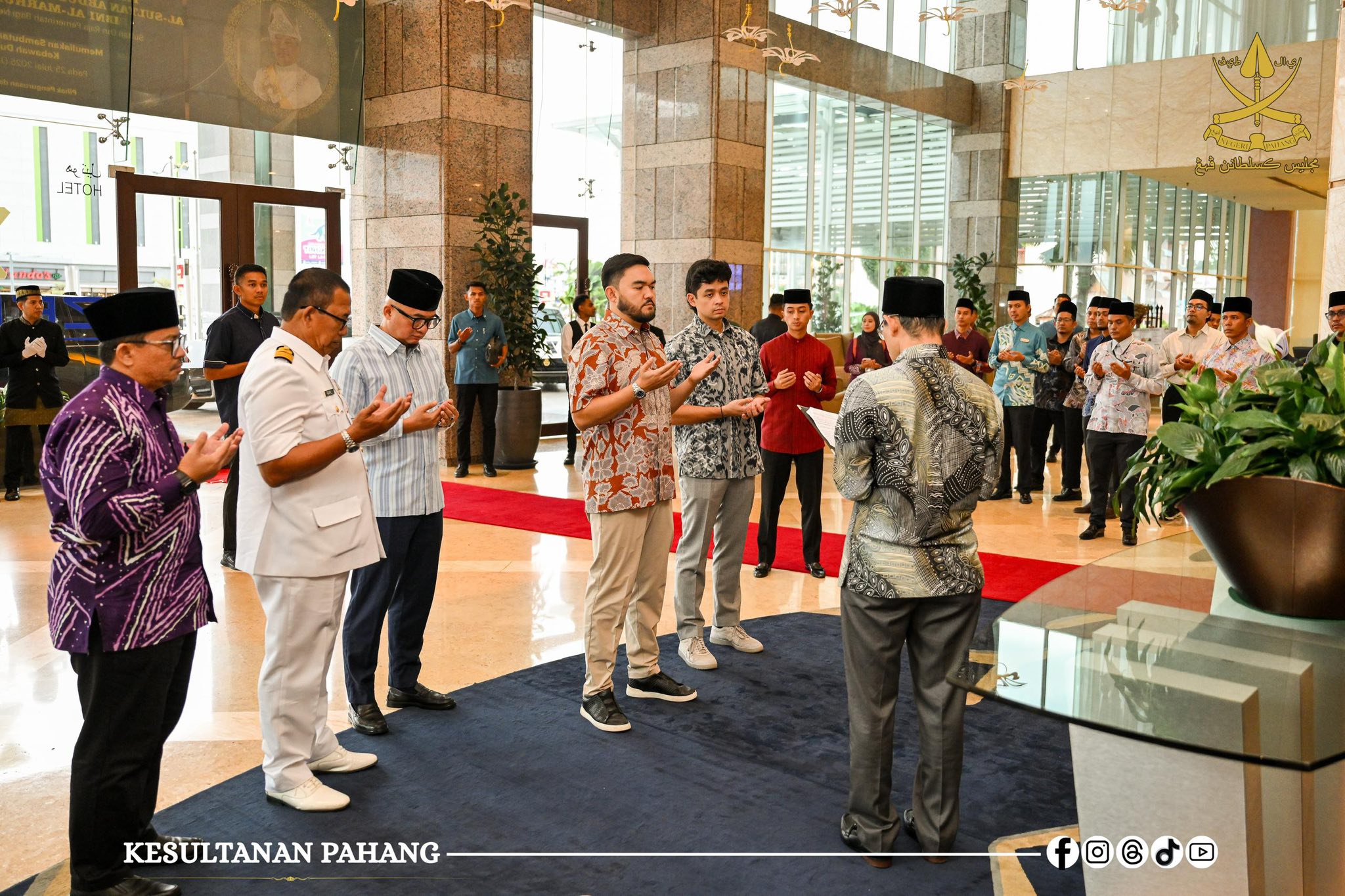KUANTAN, 17 Ogos 2025 – Kebawah Duli Paduka Mulia Tengku Mahkota Pahang Tengku Hassanal Ibrahim Alam Shah Ibni Al-Sultan Abdullah Ri’ayatuddin Al-Mustafa Billah Shah berkenan berangkat menyambut keberangkatan tiba Duli Yang Teramat Mulia Raja Muda Selangor, Tengku Amir Shah Ibni Sultan Sharafuddin Idris Shah Al-Haj ke negeri Pahang hari ini.