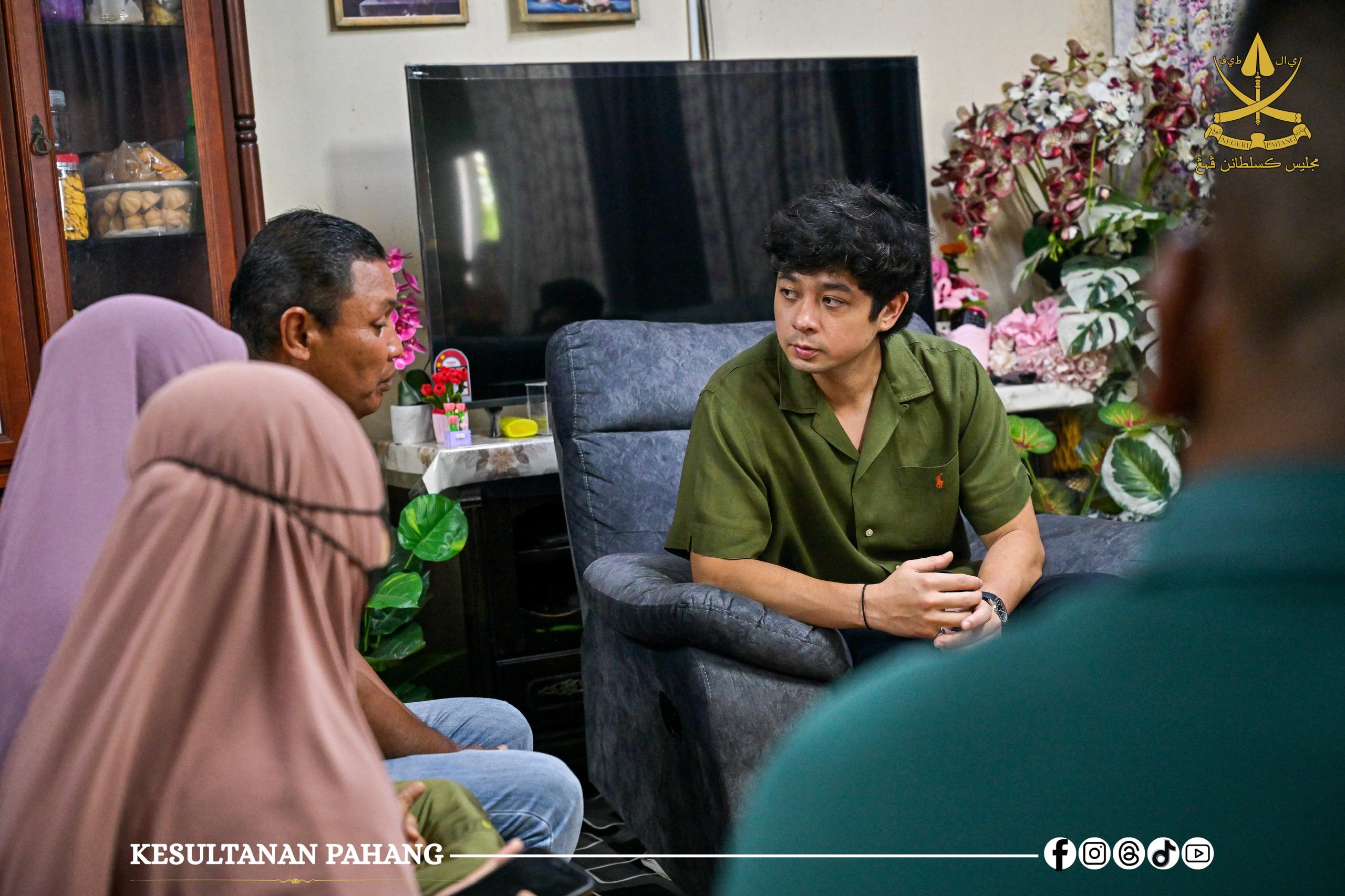 KUANTAN, 19 April 2026 – Kebawah Duli Paduka Mulia Tengku Mahkota Pahang Tengku Hassanal Ibrahim Alam Shah Ibni Al-Sultan Abdullah Ri’ayatuddin Al-Mustafa Billah Shah berkenan bercemar duli berangkat menziarahi keluarga mangsa lemas dalam kejadian di Balok di Felda Lepar Hilir 3 di sini hari ini.