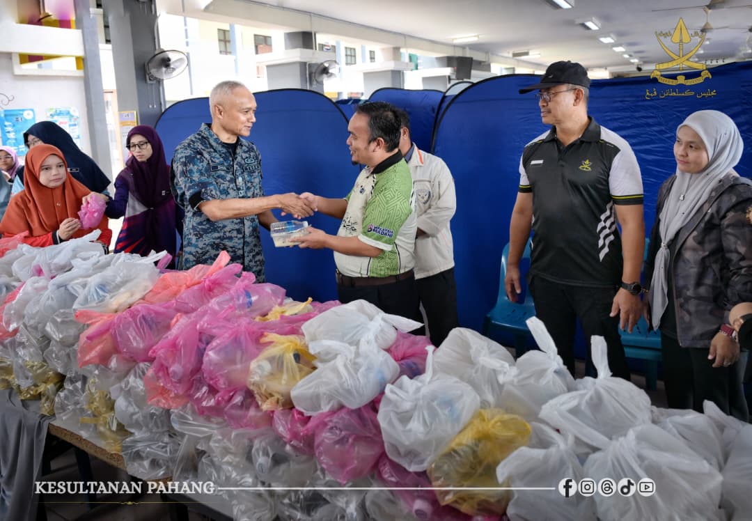 Dengan diketuai Pengelola Bijaya Diraja KDPB Sultan Pahang, Mejar Jeneral Dato’ Mohamed Zahari bin Dato’ Haji Yahya TUDM, sebanyak 340 bungkus nasi goreng cina telur mata, kuetiau goreng telur mata dan bihun goreng telur mata beserta minuman diagihkan di PPS Sekolah Kebangsaan Melati di sini.