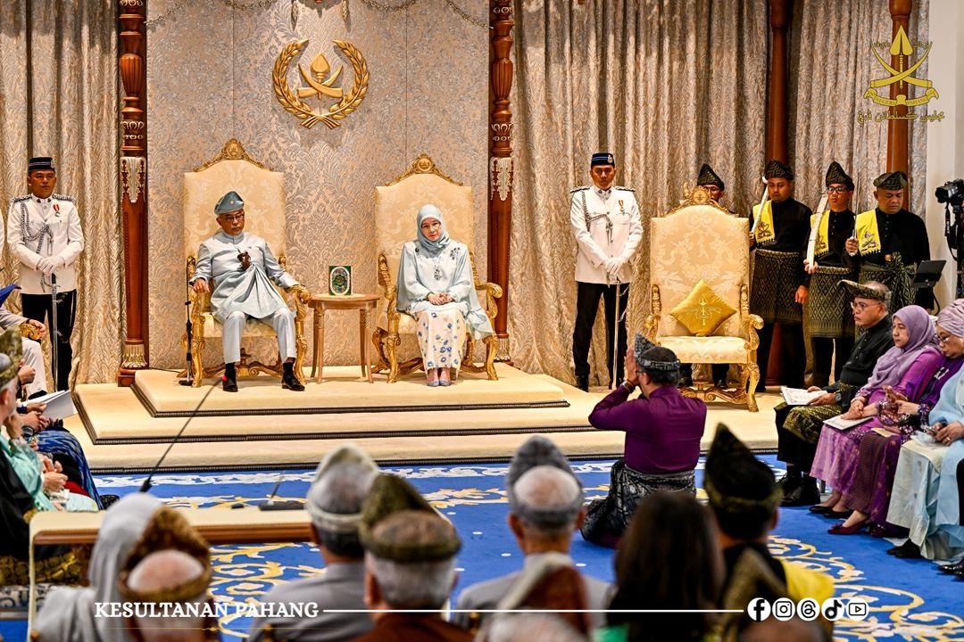 KUANTAN, 3 Februari 2026 – Kebawah Duli Paduka Baginda Sultan Pahang, Al-Sultan Abdullah Ri’ayatuddin Al-Mustafa Billah Shah Ibni Al-Marhum Sultan Haji Ahmad Shah hari ini berkenan mengurniakan gelaran Orang-Orang Besar Negeri Pahang kepada seramai 16 individu dalam Istiadat Pengurniaan Gelaran-Gelaran dan Istiadat Menjunjung Duli Kerabat-Kerabat Bergelar serta Orang-Orang Besar Negeri Pahang Darul Makmur yang berlangsung di Balai Mahkota, Istana Abdulaziz, hari ini.