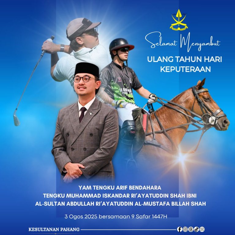 Dengan penuh rasa hormat dan takzim, kami warga Majlis Kesultanan Pahang (MKP) mengucapkan Selamat Menyambut Ulang Tahun Hari Keputeraan kepada Yang Amat Mulia Tengku Arif Bendahara Tengku Muhammad Iskandar Ri’ayatuddin Shah Ibni Kebawah Duli Paduka Baginda Al-Sultan Abdullah Ri’ayatuddin Al-Mustafa Billah Shah pada 3 Ogos 2025 bersamaan 9 Safar 1447H.